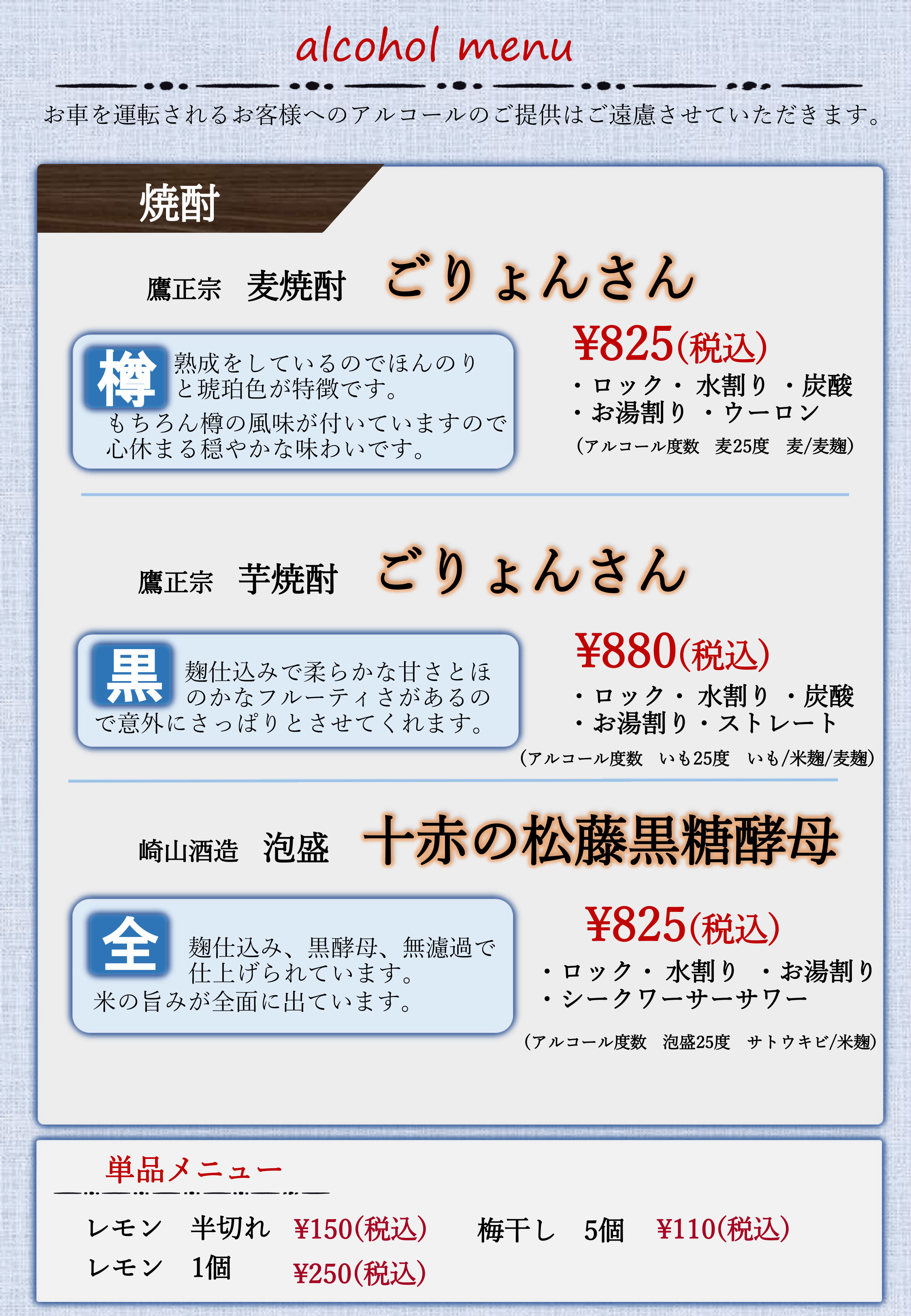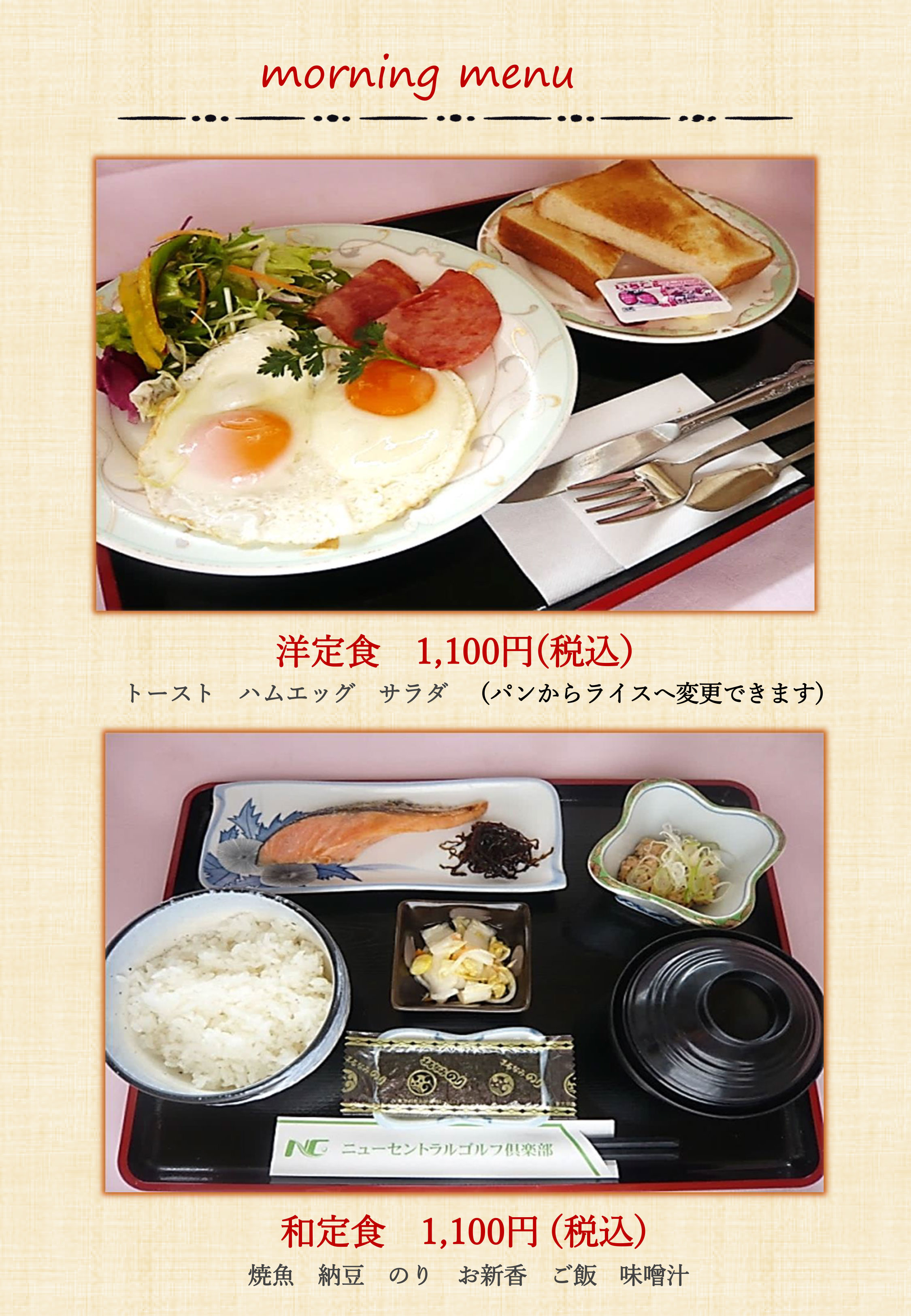 朝のおもてなしメニュー・一品メニュー(アラカルトメニュー)