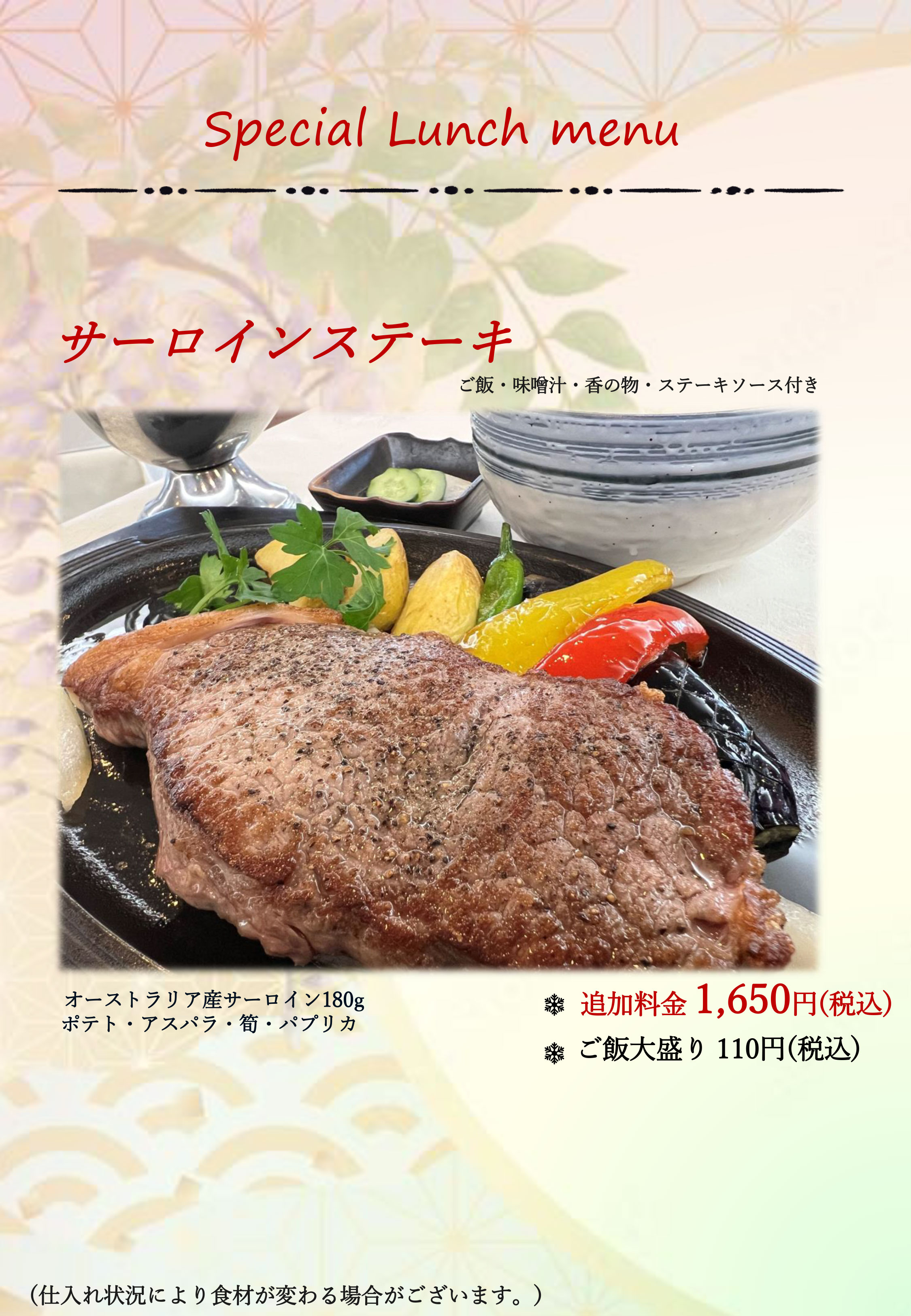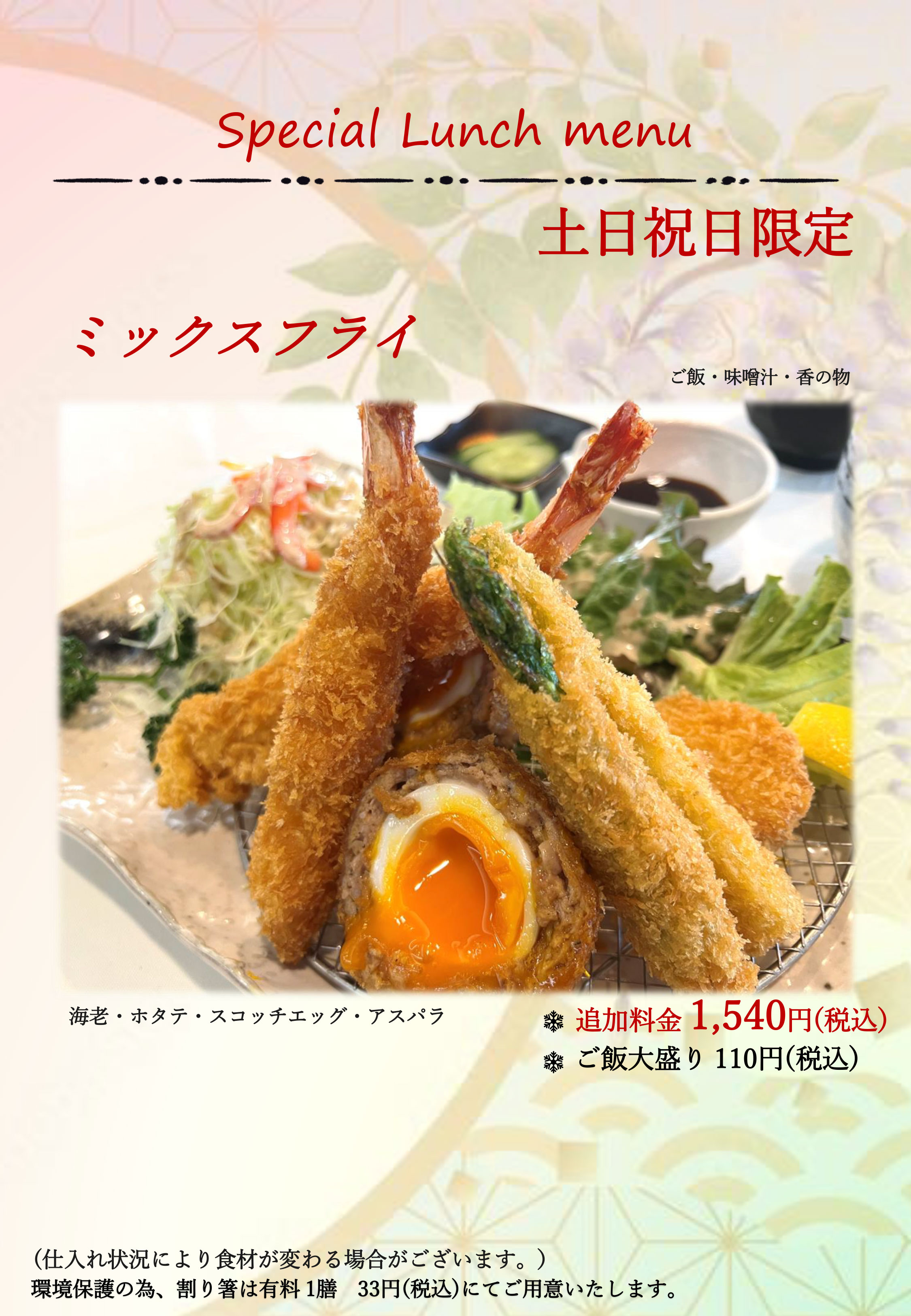 土日祭日 限定メニュー